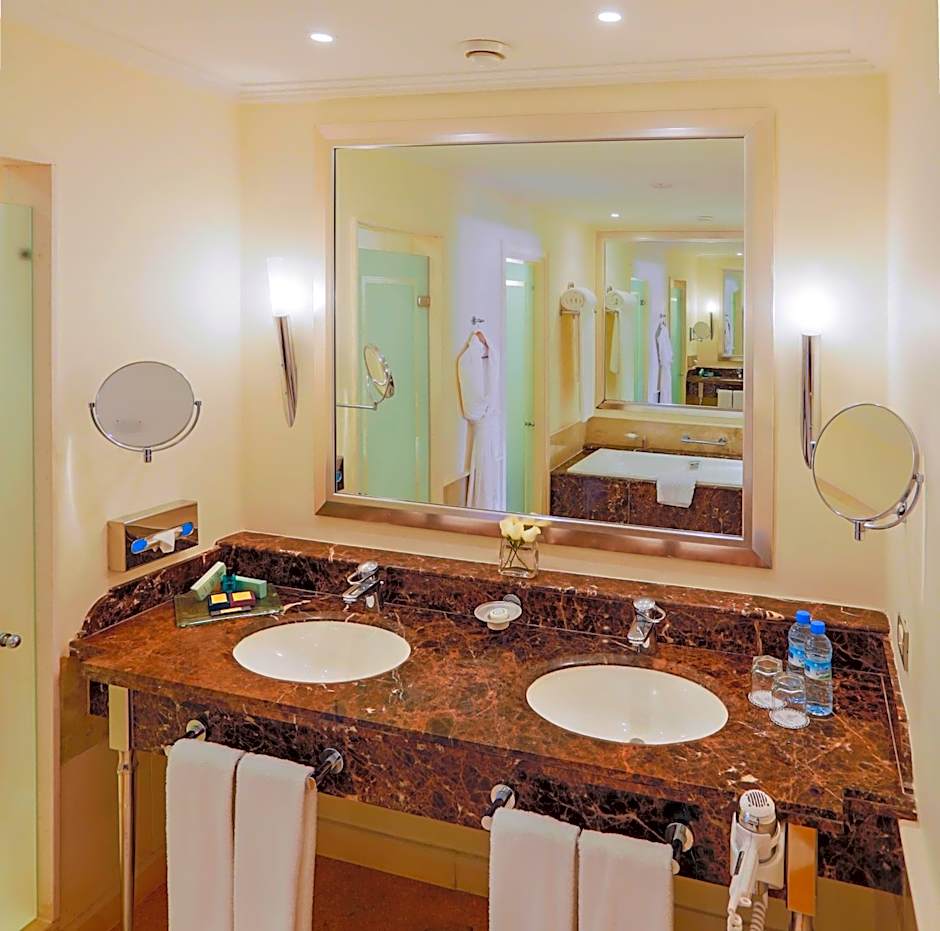 The spa invites relaxation with beauty and wellness treatments, a hydrotherapy pool, an outdoor swimming pool, a hot tub, and private treatment rooms. Additional facilities include a kids club, a modern fitness center, and recreational options such as horseback riding. The resort also provides complimentary self and valet parking, a free local shuttle, meeting spaces, a ballroom, babysitting services (at an additional charge), and smoke-free accommodations.