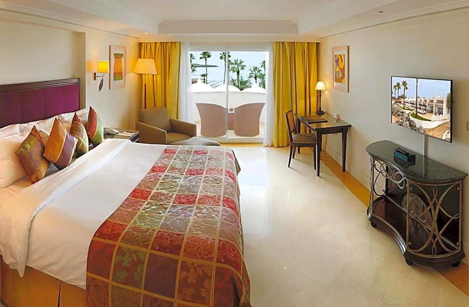 L'Amphitrite Palace Beach Resort & Spa features refined rooms and generously sized suites, designed with luxurious furnishings and sophisticated décor. Air conditioning, complimentary Wi-Fi, LCD satellite TVs, and partially open bathrooms with separate tubs, showers, and bidets are features of each accommodation. Many rooms include a private balcony or patio.